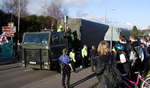 A nuclear transport is heading from a factory in Reading for a nuclear bomb store at Coulport - north of Glasgow, and expected to arrive on Monday 12th afternoon. Each of the 3 lorries in the convoy is thought to be carrying two nuclear warheads which, each of them, have a destructive capacity eight times the bomb that destroyed Hiroshima.