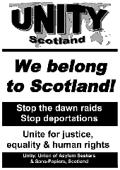 Please come to the UNITY Centre, 30 Ibrox Street, Glasgow (near Brand Street) to collect leaflets to give out. Tel: 0141 427 7992 for more details