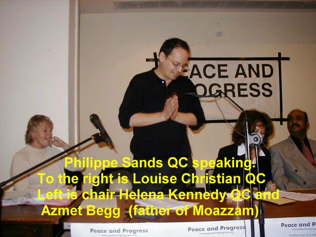 The next speaker Louise Christian paid tribute to Mr Begg. Only a few years ago who would have thought that the US government would have put 660 young men, all of them Muslim, in a prison camp in a place beyond the jurisdiction of any court and deny them access to a lawyer and say that they were going to hold them indefinitely. What do you do? She said there was a double illegality about Guantanamo. The rules for the military tribunals contravene International Law. She spoke of the `appointing authority` - an Orwellian sounding phrase - is not in fact an authority at all but one man - Paul Wolfowitz! The American Bar association has advised its members not to handle these cases. The prospects of show trials next year is a real possibility. Any lawyer will tell you that the concept of a `war on terrorism` has real problems.