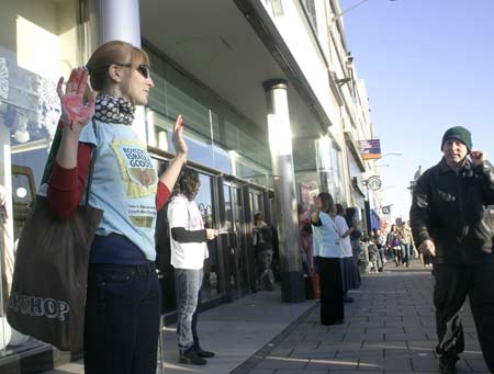 Some were handing out leaflets whilst others held out bloody hands to passers-by. There were many voices of support and at one stage we were joined by some very enthusiastic youngsters who decided that shopping was far less fun than what we were doing.