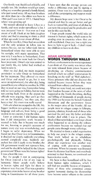 "Omar and Jamil have been wrongfully detained, obscenely tortured and treated despicably for over five years by the United States at Guantánamo and other secret prisons. The Spanish authorities provided the US with the photograph which led to Omar's wrongful detention and was proven to be of a different man. It is time to leave these men alone and let them return to some semblance of a normal life. Omar has many medical issues, including an eye blinded by the guards at Guantánamo, which are at last receiving attention. It would be inhumane to continue to harangue these men any further. The US military should apologize for its mistakes and return its dealings with suspected criminals to an honourable and transparent system of due process, so rebuilding trust and respect."