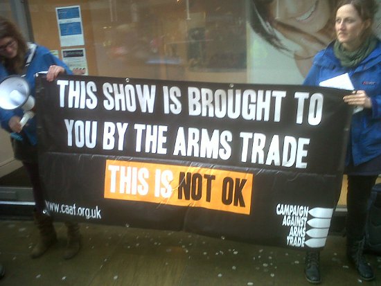 The event hosts hundreds of exhibitors, not only leading arms companies, who make huge profits from conflict and repression. It is officially supported by a vast range of military, police and private security organisations, and is endorsed by state agencies such as the MoD and NATO.