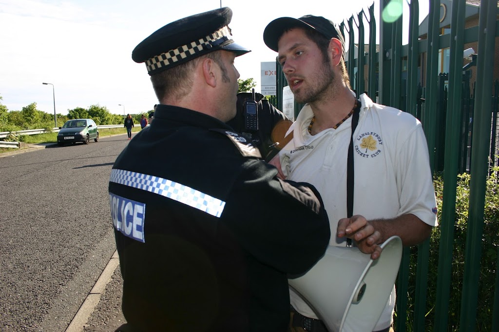 The arrest today is part of an escalation of policing in the last week or so outside EDO. We need your support. We will be outside the factory, remembering the dead from Somaila to Yemen to Afghanistan, Next Wednesday from 4-6pm - we need your support