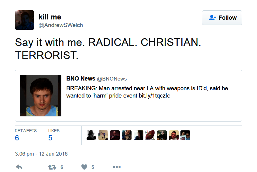 Once again, rightwing Christianity proves it is as ever bit extreme as Islamic extremism, at a time when billions of people worldwide are appalled by the senseless hate crime against our gay and lesbian brothers and sisters. Despite the crocodile tears of convicted criminal Stephen Yaxley Lennon and his EDL chums, who feigned selective sympathy for the victims, to load hate onto another community - the Muslim community, more often than not, those rightwingers who hate LGBT people also hate Muslims, immigrants, Jewish and non-white people, especially UKIP types, whose twitter feeds warm to neo-nazi conspiracy theories whilst #Brexit approaches.