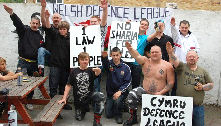 The Powell brothers became notorious after being photographed among the Sieg Heiling Nazis of (Casuals United founder) Jeff Marsh's EDL branch the Welsh Defence League, during the WDL demo in Swansea, 17 Oct 2009; but, after the Powells had been exposed as Nazis, the EDL still chose Bryan Powell to steward an EDL march in London, 5 March 2010.