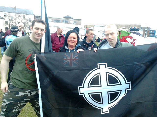 The guy on the right, looking down, is probably BNP Wales activist Roger Phillips