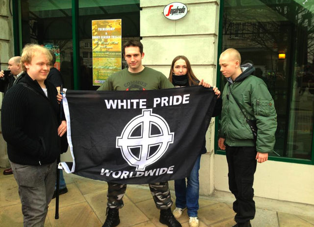 They borrowed Luke Pippen's Skrewdriver / Blood & Honour / Swastika flag
