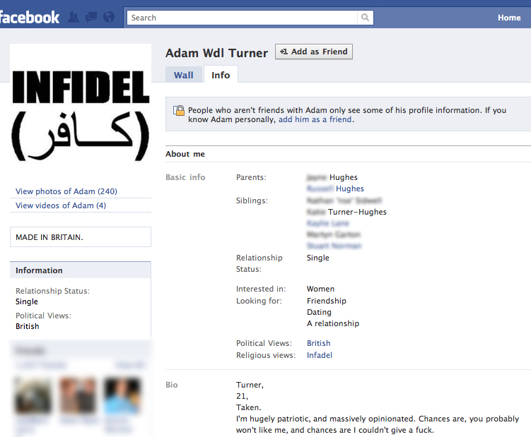 He's mates with all the usual Blood & Honour knuckle-heads like Val Drury and "Battle of Waterloo" veteran Mick McGarity; and parental love is a wonderful thing, but this guy's parents have lost the plot completely (see screen-caps)