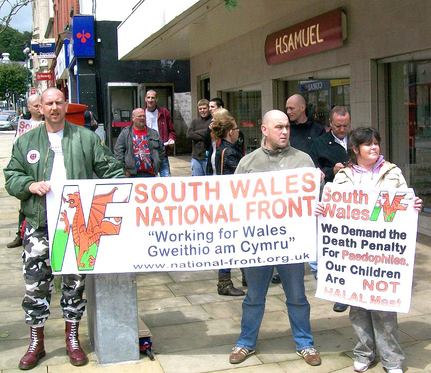 Carwyn Wood (far left) on earlier South Wales NF demo