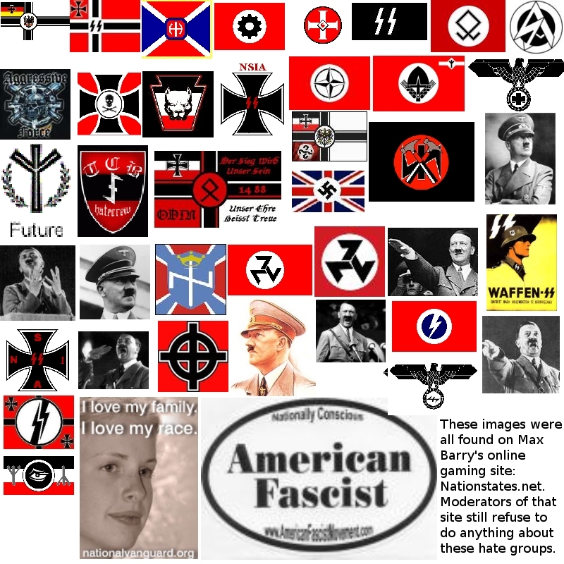 It seems as though Neo-Nazis have flocked to the site to create nations of their own. Nations, in gameplay, are part of regions that function as small networks. Each region has its own forum, as well as other forums hosted by a linked site, free of charge. Nazis soon began creating their own regions, including links to external sites and racist bulletin boards such as Stormfront.