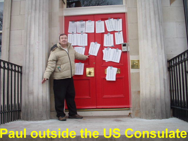 Those assembled outside the consulate were reminded that the Lancet report of 100,000 dead was now a year old and the true figure was now likely much higher. US General Tommy Franks had insensitively said, “We don’t do body counts.” However the American military does count its own dead and the number recently reached the 2,000 mark. Yasmin, from an Iraqi background, spoke that the term `resistance is futile ` should be replaced with the phrase `resistance is fertile`.