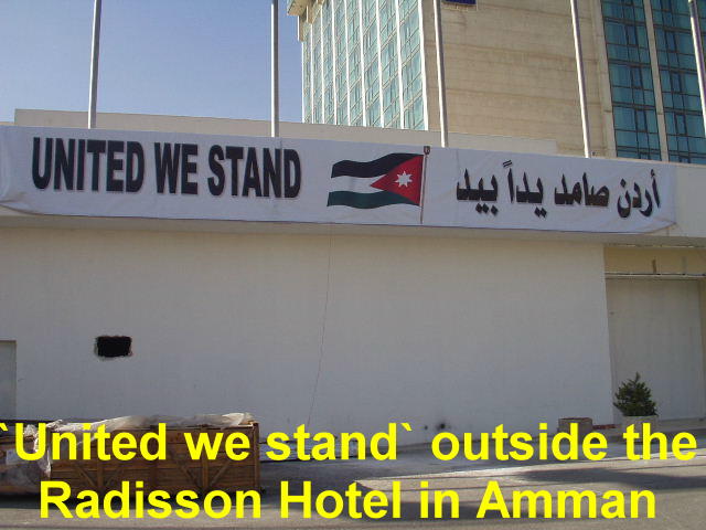Jordan has long been considered one of the most stable of the Middle Eastern countries but there was a rude awakening when on Wednesday 9th November three hotel bombings killed over 50 people - the worst atrocity in Jordan in 30 years. The Hotels targeted were the Radisson SAS where a wedding party was taking place and the second was the nearby Hyatt Hotel; the Days Inn on the outskirts of Amman was also struck by a bomb.
