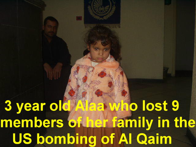Despite all the talk about `precision bombing` and `surgical strikes` the whole purpose of bombing a country is to kill and injure as many people as possible. Furthermore the aim is to lower the morale of those who survive and terrorise them in to submitting to the new masters of the country. Secondary objectives are to destroy the infrastructure of the country and to target electricity stations, sewage and water treatment plants, food factories and indeed in the case of Fallujah, mosques, schools and hospitals. Needless to say this is all totally illegal under the Geneva Convention and is a violation of any kind of decent or civilised behaviour - ah, but then of course we are the `civilised west` and west is best. If you don’t agree you get the crap bombed out of you. “Believe or Die” as the late Bill Hicks would have put it.