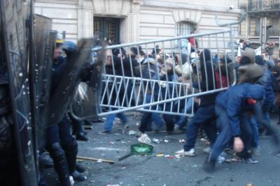 Youths rioted against CRS this evening in Paris as the riot police blocked students approaching the Sorbonne. Photos here and here.