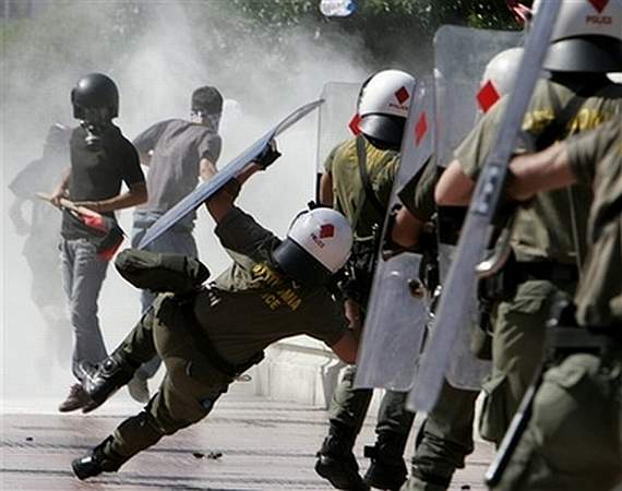 PS: We are almost certain that the MAT (riot police) are in a process of acting independently, and this is proven by the big hatred and brutality during the student mobilisations. They had entrapped in the Law Department thousands of students, they have beaten especially female students and journalists who were photographing the brutality, they have thrown inside the building chemicals (not just CS but other kinds like mustard and neural gases), there were many unconscious and injured students and only by accident and because of the barricades there was not someone killed! We are certain that they lust for blood. We call the people and the students the next time to be more organised and more aggressive. THEY SHALL NOT PASS!