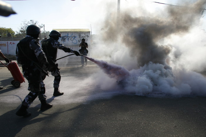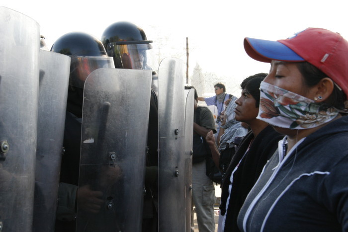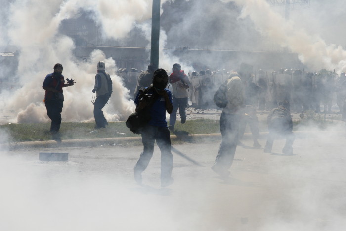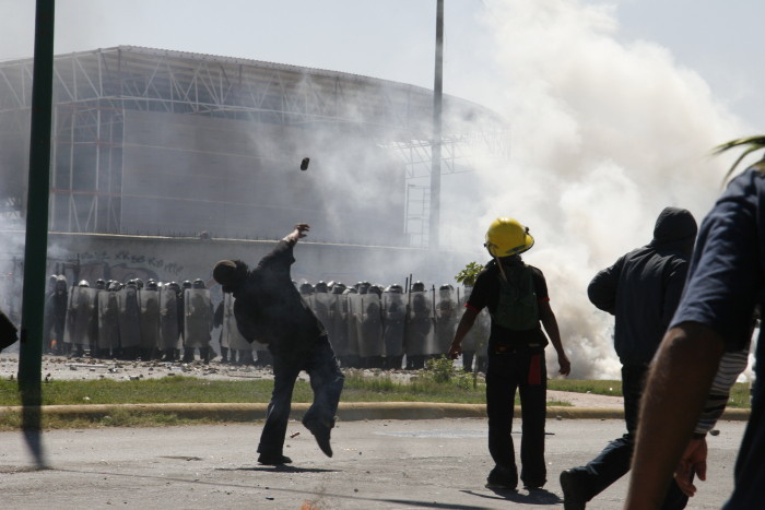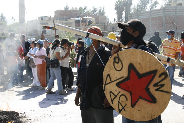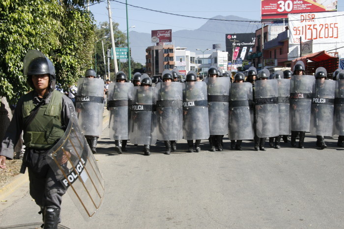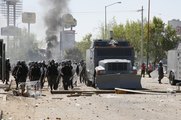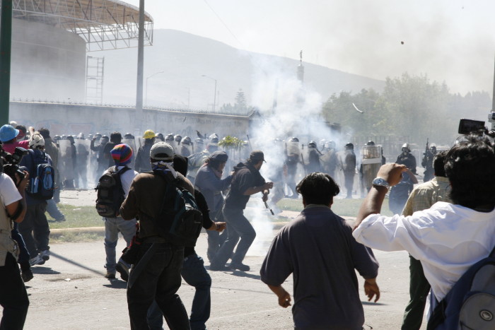 Police and protesters fought outside the Oaxaca State University, protesters won