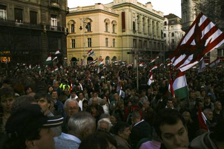 Earlier, the main right-wing opposition Fidesz party staged an anti-government rally with an estimated 200,000 sympathizers, including several thousand far-right supporters.