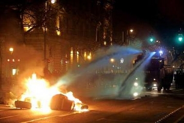 The protesters had gathered near a police precinct in downtown Budapest after receiving news that one of their comrades, wanted for inciting street riots in September and October, had been detained.