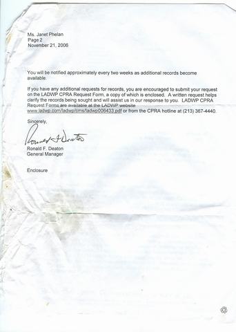In 2006, I submitted more requests for documents to the Los Angeles Department of Water and Power. Specifically, I requested blueprints from the Ardmore Street Cement Re-lining Project.