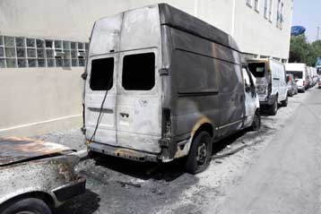 And if some of our comrades got captive in the enemy's trap, keep in mind that wolves are always patient in their ambushes. We will be close to them with a clear breath waiting for our next meeting for the new attacks. In the dawn of Friday, May 30, we renewed our contracts with fire, that we will not leave more silent nights behind us and went on to 11 arson attacks in Athens and Thessaloniki (more precisely, against a Millenium bank and a Eurobank, as well as against foreign mission cars in Pilea).