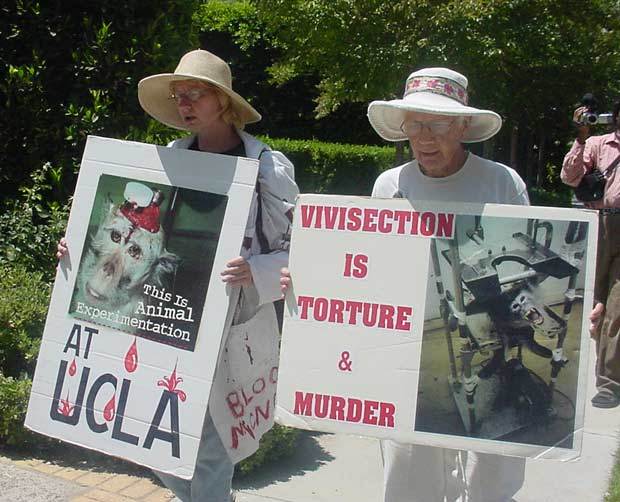 All in all it was a great day that was not only effective for the primates imprisoned inside the labs at UCLA, but also a great way to educate the public as to what is being done with their tax dollars to innocent primates behind the cement walls and locked doors at UCLA.