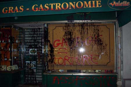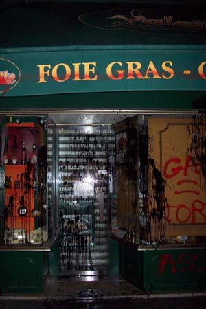 2 Valette foie gras stores, on rue des Pyrénées and rue Saint-Augustin, were visited by the Animal Liberation Front: