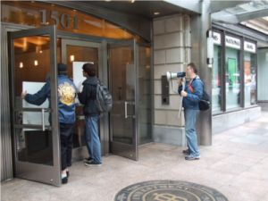 actually opening the doors to the lobby and chanting, "500 Animals died today, Barclays Capital is to blame!" and "Your money, Your fault!" through two megaphones! Think Barclays and the office neighbors got the point?