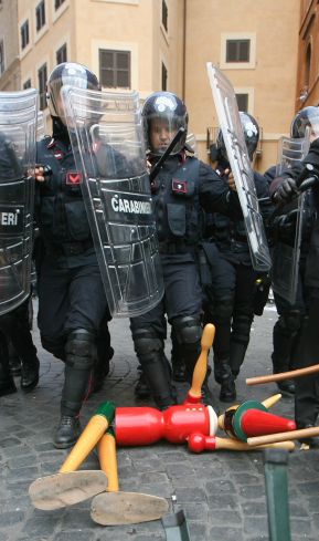 In Rome, this week, was the first organized effort by neofascisti groups to infiltrate into the series of student mobilization. The first episode, emphasized by the mainstream media was on Monday when some neofascisti linked to Casa Pound tried to takeover the head of the parade of school students from the fourth Municipality. Today, while the students were converging on Piazza Navona, a group of students tried to take a position in front of the barriers around the entrance of the Senate. Student protested the group which responded by attacking some protesters with sticks and belts. On arrival of the University movement into the Piazza, there was a very hard fight with 'Block' students, who was chased them away from the square. Police and carabinieri also charged the crowds. The news agencies speak of 30 arrests among the groups of the extreme right. At 14:30 there was a press conference at Sapienza on the events in Piazza Navona.