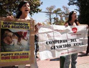 Some weeks ago an undercover investigation carried out by ADI revealed the cruel and evil business of vivisection on primates, that led to the animal hell in HLS in the UK. Some of the experiments exposed were financed by Glaxo SmithKline and AstraZeneca, so they were chosen as targets for two days of action in Santiago, Chile.