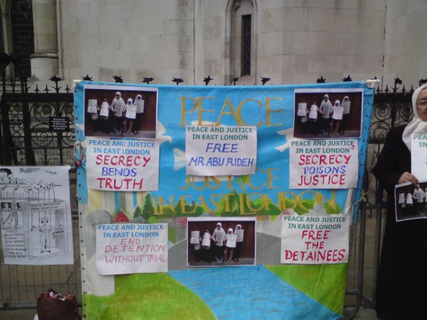 Supporters of Mr. Abu Rideh, in particular from the Muslim Prisoner Support Group and Peace and Justice in East London, held a demonstration in support outside the High Court before the hearing. Over fifteen people attended and several attended the hearing too. Mr. Abu Rideh’s case is also backed by Amnesty International.