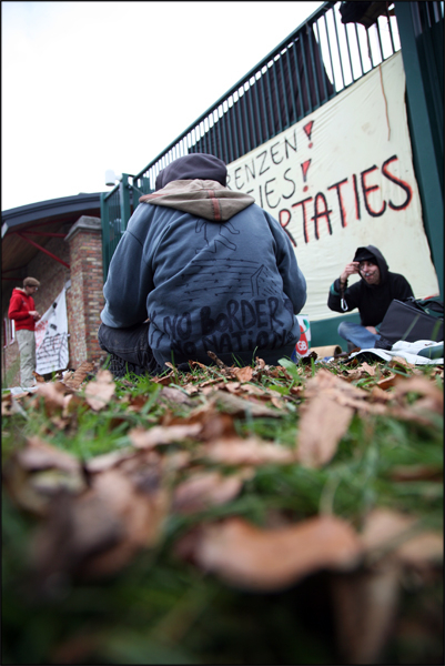 This morning 120 activists blockaded two detention centres in Brugge and Vottem (Liege). The activists gathered together from all over Europe and aiming to stop deportations for today. They protest against the inhumane character of the European immigration policies.