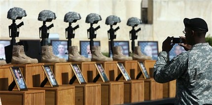 http://www.msnbc.msn.com/id/33821337] Thirteen people who died by the gun are represented at their memorial as weapons of death ...