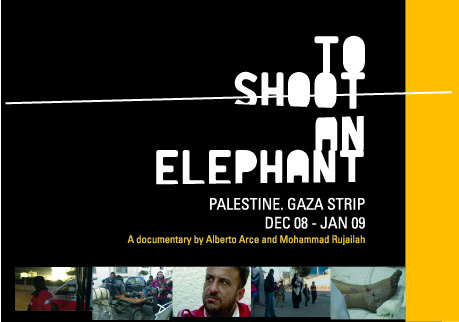 The 18^th of January 2010 is the first anniversary of the end to the bombing by Israel of the Gaza Strip; an attack which began on the 27^th of December 2008, and lasted until the 18^th of January 2009, and in which 1,412 Palestinians lost their lives. The documentary /To shoot an elephant/ is an eye witness account from within the Gaza Strip of what occurred during those days. This direct and privileged narration becomes a tool with which we can confront the Israeli propaganda about what really happened there and the silence of the international community.