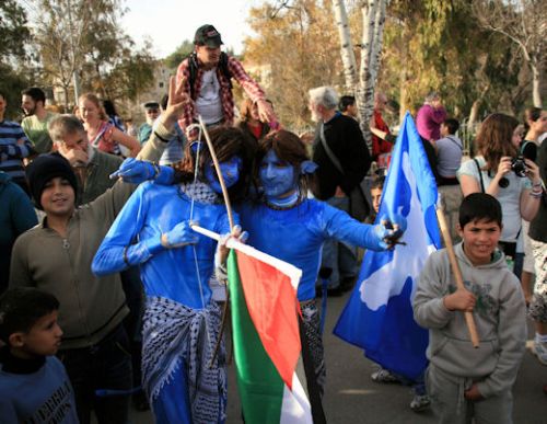 Activists in Bi’lin reenacted James Cameron’s last film Avatar. Five Palestinian, Israeli and international activists were painted blue, with pointy ears and tails, resembling the Avatar characters. Like Palestinians, the Avatars fight imperialism, although the colonisers have different origins. IDF soldiers dispersed protesters with sound bombs and tear gas, resulting in injuries to four people. Many other activists suffered from tear gas inhalation. Dr Mustapha Barghouthi, Secretary General of the Palestinian National Initiative, condemned these tactics, stating; "attacks on demonstrators, will not discourage us from continuing the popular struggle against the apartheid system created and carried out by Israel in the occupied Palestinian territory."