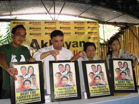 The group said the Deny the Five Campaign would use multiple arenas to campaign against the Arroyos. It includes voters' education, internet activism targeting social networking sites, a people-oriented shame campaign and a party-list watch out to expose bogus party-list groups.