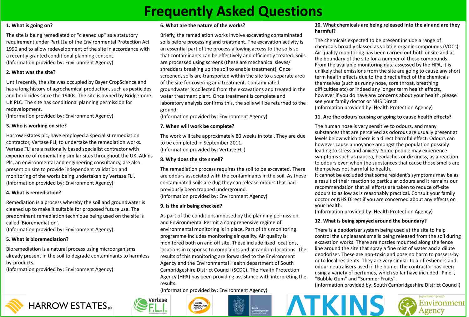 These pages are jointly produced by South Cambridgeshire District Council (SCDC) and the Environment Agency, The Health Protection Agency, NHS Cambridgeshire, Harrow Estates and Vertase FLI.