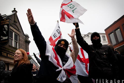 The English Defence League have been responsible for placing pig's heads on Mosques, pulling the clothing from Muslim women, smashing up shops, cars and homes of Asian people. They have sent death threats to peaceful anti EDL campaigners including women. Whenever the EDL "march peacefully" the shops in the cities affected have had to close which is affecting thousands of people. The EDL claim to support our troops but endanger and compromise our soldiers. Serving members of the British Army have been attending EDL meetings, marches and rallies wearing EDL shirts. This means that the British Army are attacking British Muslims, British civilians. The MOD have not [as yet] banned serving soldiers from attending EDL events and meetings or wearing EDL clothing. The EDL have an Armed Forces Division. This is very upsetting fro Britsh civilians. The British Army are attacking British people while taking part in EDL activity against British Muslims.