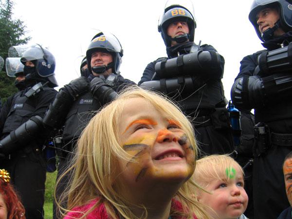 Police liaison for the kids' march at the Heathrow climate camp was done separately from the main protest with the chief superintendent who was in overall charge of policing the whole event, which meant that the riot police were under strict orders to leave the kids completely alone.