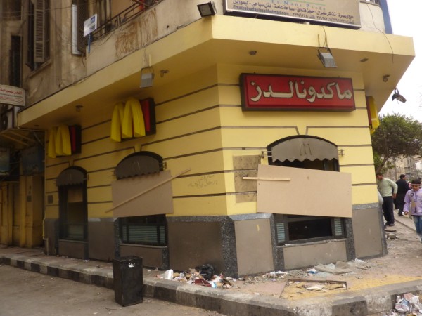 During the last thirteen days rioting has erupted through downtown Cairo. The property damage caused in the rioting has been well targeted with branches of multinational corporations, government cars and buildings, police and army property and banks destroyed while local cafes, apartments and shops have been left untouched.