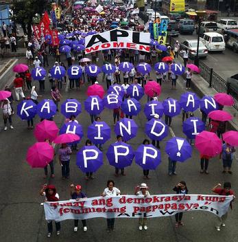 Akbayan-Youth • Amnesty International • APL-Women • Asian Circle 1325 • Bagong Kamalayan • BATIS • Batis-AWARE • Buklod – Olongapo • CATW-AP • Center for Migrants’ Advocacy • Center for Overseas Workers • Development Action for Women Network (DAWN) • Focus on the Global South • Free Burma Coalition • Freedom from Debt Coalition • Initiatives for International Dialogue • KAISA-KA • LRC-KSK/FOE-Phils. • Movement for the Advancement of Student Power (MASP) • Medical Action Group (MAG) • Partido ng Manggagawa (PM) • PKKK • Philippine Alliance of Human Rights Advocates (PAHRA) • PREDA • SARILAYA • SCAP • Transform Asia • TWMAE • UP Sigma Alpha Nu – Manila & Los Banos • WEDPRO • WomanHealth • Women’s Legal Bureau • Welga ng Kababaihan • Women’s Crisis Center • Youth and Students for the Advancement of Gender Equality (YSAGE) • World March of Women – Pilipinas