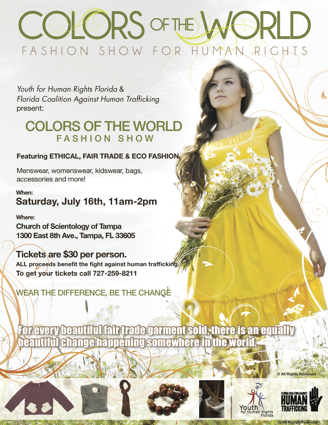 These groups are the co-producers of a fashion show called “Colors of the World.” This fashion show will feature ethical, fair trade and ecofashion. The event is scheduled for Saturday, July 16th, from 11am to 2pm and will include refreshments and fashion items to purchase, along with the fashion show.