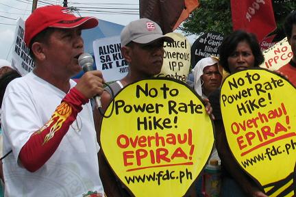 In a protest action outside the Ortigas office of the regulatory body coinciding the public hearing on the said petition, FDC members from various communities and Youth Against Debt brought giant “scissors” demanding cuts in electricity rates in the country, which, at present, has the highest residential power rates in Asia at 24.566 US cents per kWh.