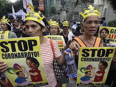 Akbayan Party Spokesperson Risa Hontiveros said Corona’s removal from public office is necessary to “restore integrity to the high court and remove Gloria Macapagal-Arroyo’s last defenses.”