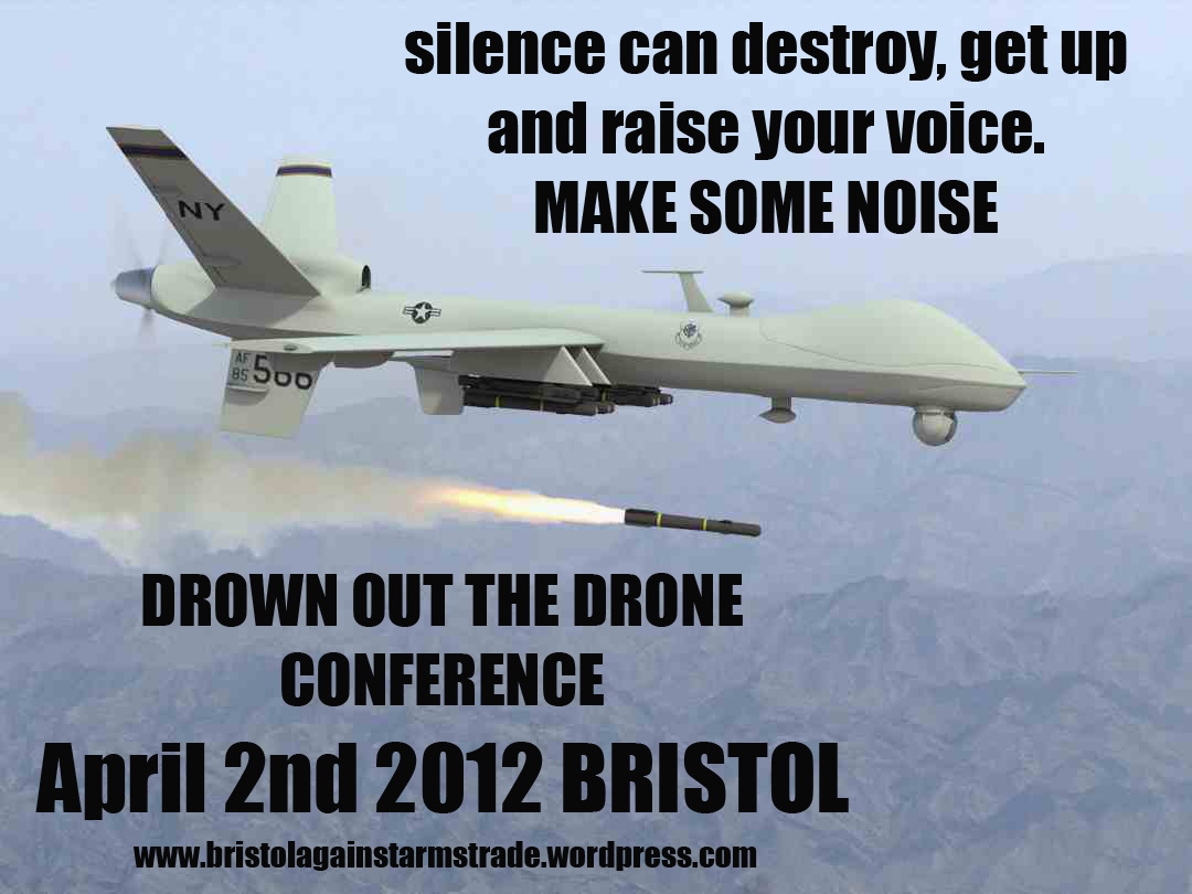 Monday 2nd April is the 27th annual Bristol drone conference, but this years gonna be different. Bristol Against Arms Trade have teamed up with Bristol Stop the War and Bristol Palestine Solidarity Campaign, with the aim of making so much noise the conference will be a flop.
