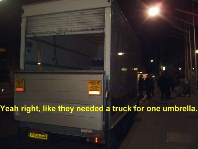 Imagine Barbara Tucker being driven to the square in a gilded carriage and protected not arrested by the police. Imagine some pompous official commentator saying in his mellow Oxbridge tones “Let us wallow in this constitutional moment.” The Ministry of Defence would be searched for gunpowder (and nuclear weapons) and Black Rod would strike on the flap of Barbara’s tent/umbrella - if she has one. The Rozzers led by Sergeant Smellie (his real name, honestly) and PC Simon Harwood (of Ian Tomlinson fame) would shout “Hats off Strangers!” Barbara would read from a goat vellum parchment that her government wants Tony Blair and George Bush arrested for war crimes. She also wants a full investigation in to the role the media played in shaping public opinion for the war. Ah, if only.