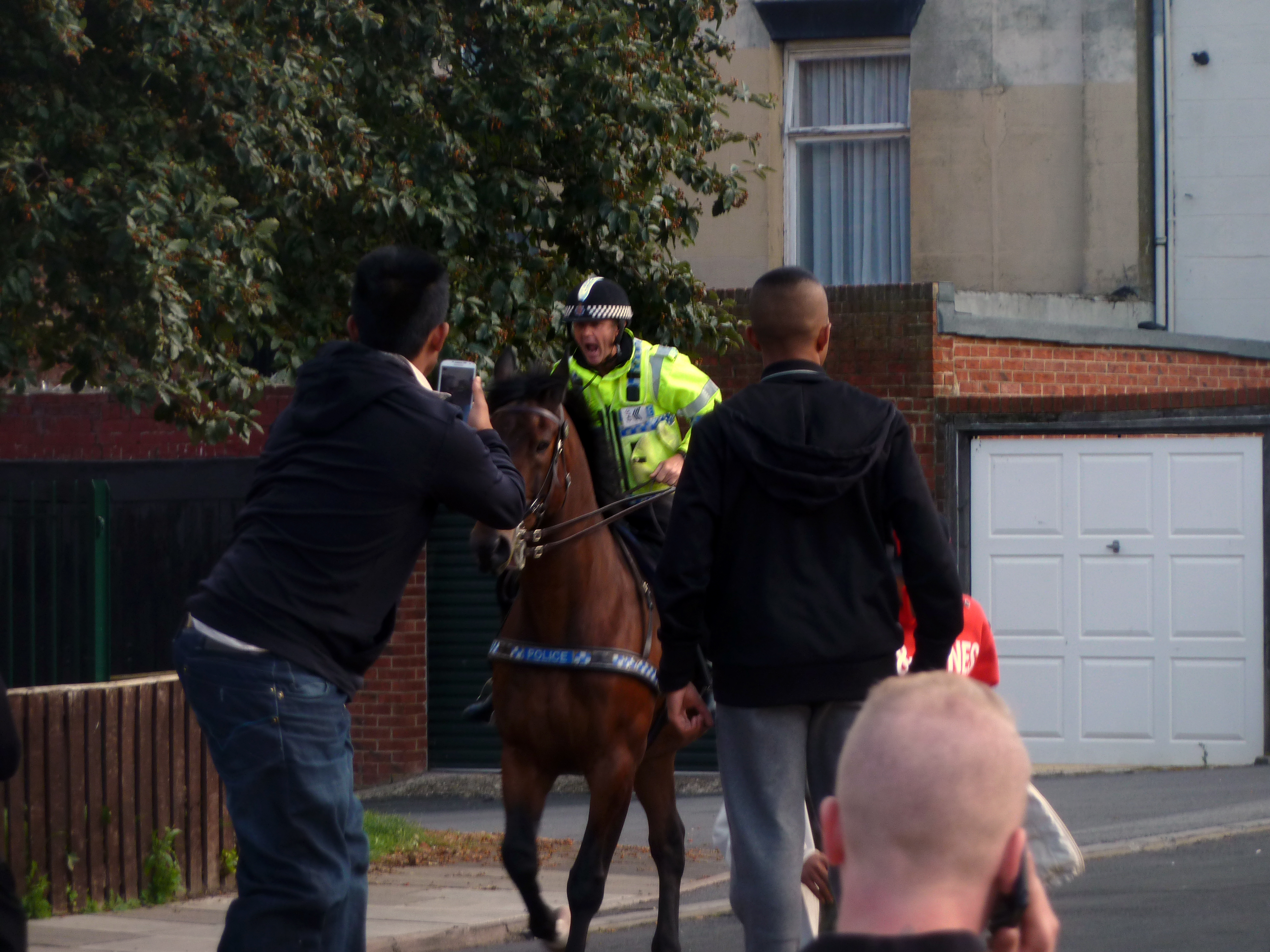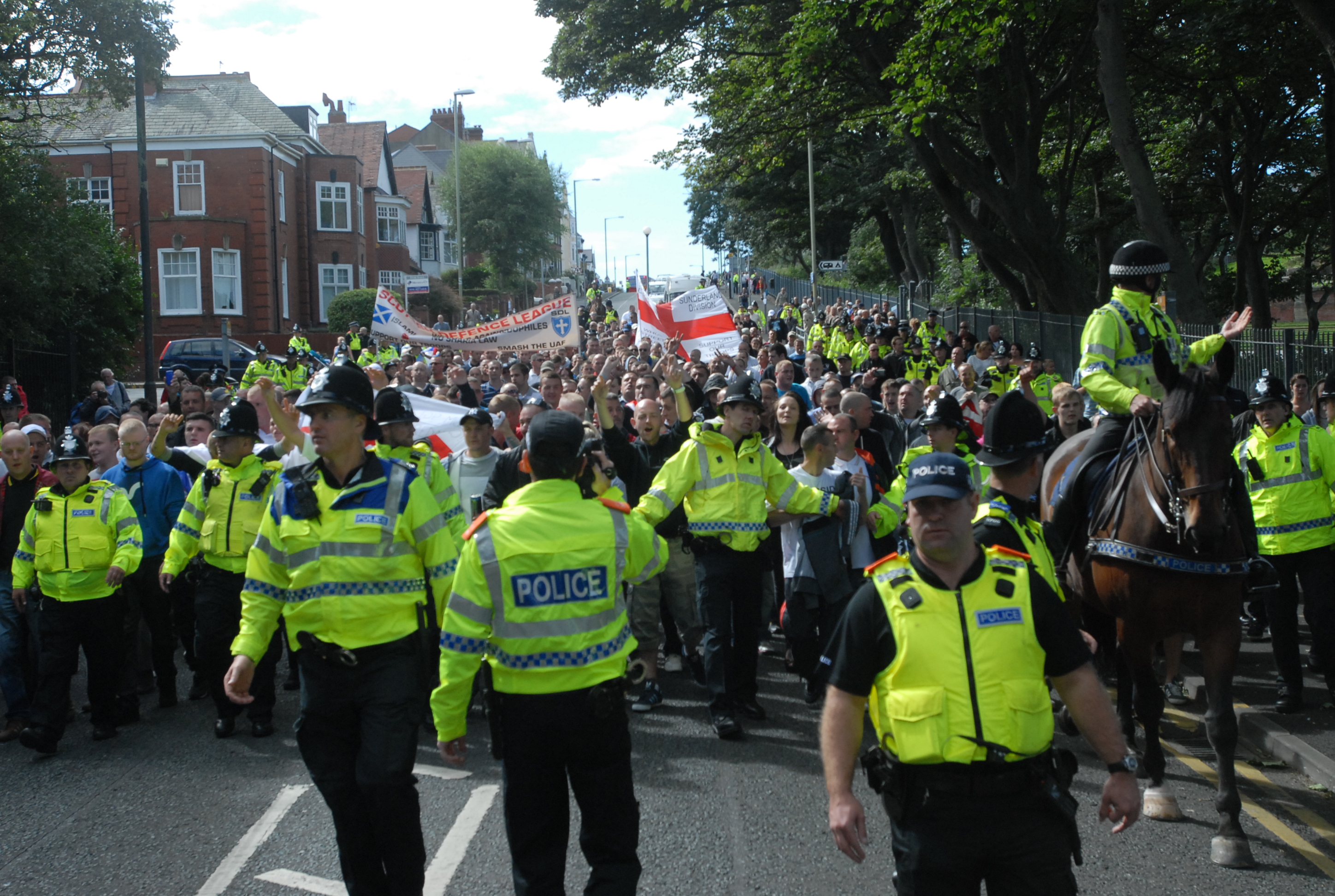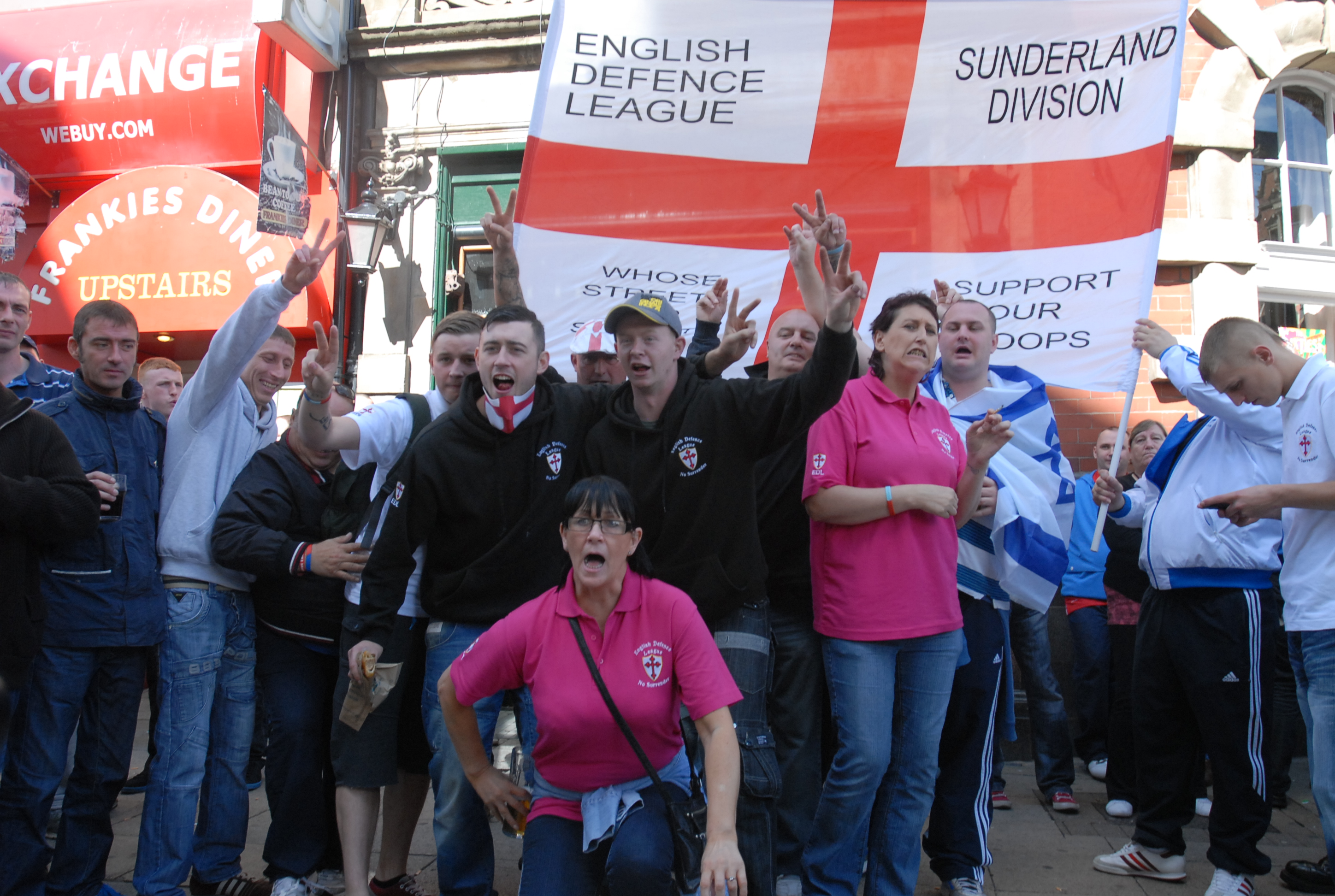 About 350 members of the right wing groups the EDL and North East Infidels gathered from 10am at The Scotia pub in the town centre ahead of a planned march.
