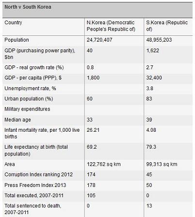 They never call themselves the names we do either: officially, it's the Democratic People's Republic of Korea (that's the North, to the rest of us) and the Republic of Korea. And, while the South is westernised and industrialised, the North has the distinction of being the most corrupt country int e world (joint with Afghanistan), according to Transparency International, have a high infant mortality rate and homicide rate - plus have one of the lowest press freedom scores anywhere in the world.