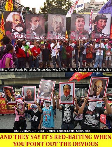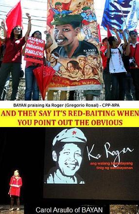 [*] "The national united front, however, is not only for the purpose of armed struggle it is for legal struggle... At any rate, even there are forces of armed revolution, there are legal democratic forces in the Philippines. The biggest of these is Bagong Alyansang Makabayan or BAYAN for short,.. Its biggest component organizations are the Kilusang Mayo Uno (KMU) which is the labor center, the Kilusang Magbubukid ng Pilipinas (KMP), GABRIELA Women's Alliance, League of Filipino Students (LFS), Alliance iof Concerned Teachers (ACT), KADENA and so on... By Jose Maria Sison, founding chairman of the Communist Party of the Philippines, March 1987 interview in Belgium