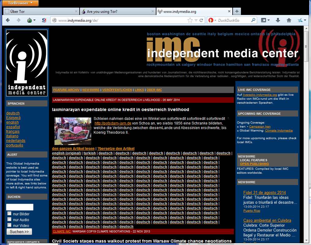 For a while now the www.indymedia.org site, which unlike others is not named after a specific location, has been in a bad shape: Little real content, piles of spy troll disinformation, apparently randomly selected cross-postings, the full scope of symptoms of siege by government agencies. It appears that the administration collective would have drained out and the site was idle for days? And yet it occurs that postings that are trying to change that are being deleted in real time while the low level deception continues.