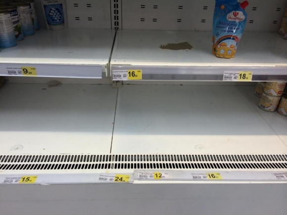 Even Ukrainian officials confess that prices in Ukrainian shops have been skyrocketing recently. Shop assistants turned to placing USD price tags in some stores so that they don’t have to change them several times during a day. These are prices for staple commodities that are actually on the rise (bread, cereals, sugar, vegetables, fruits, milk, and meat). People are not just alarmed, they are in panic and foodstuffs (especially those of protracted storage) are in rush demand.